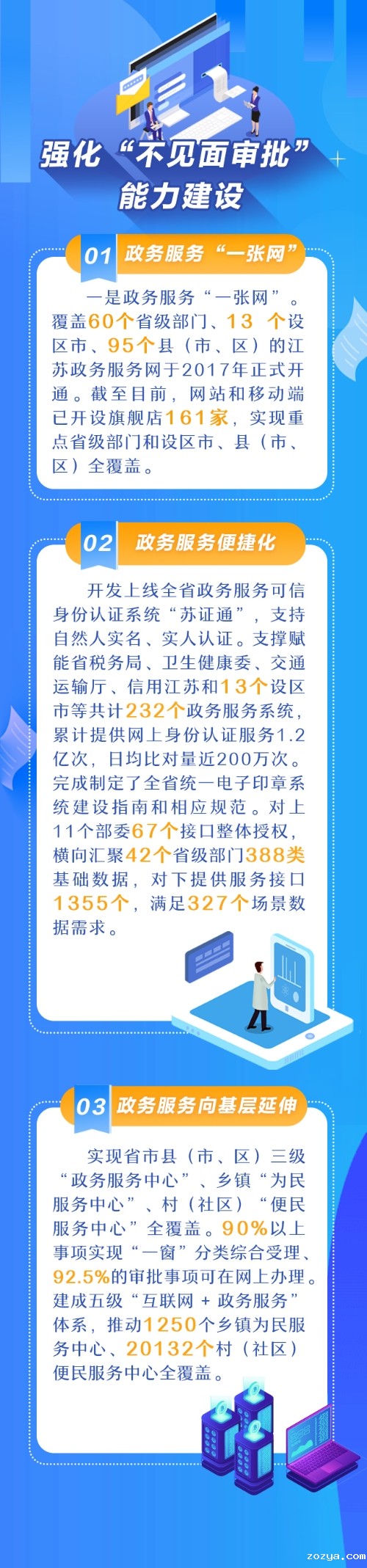 二是政务服务便捷化。打造指尖上的政务大厅,以APP、支付宝小程序、微信小程序、微信服务号为标志,建立了较完善的江苏政务服务平台生态体系。整合多部门数据资源,强化公共支撑体系建设,联合省公安厅开发上线全省政务服务可信身份认证系统“苏证通”,支持自然人实名、实人认证。全面对接电子营业执照核验能力,对接法人库基础核验能力,支撑法人在江苏政务服务网的注册、登录、验证。统一身份认证支撑赋能省税务局、卫生健康委、交通运输厅、信用江苏和13个设区市等共计232个政务服务系统,累计提供网上身份认证服务1.2亿次,日均比对量近200万次。建成全省一体化大数据共享交换体系,对上11个部委67个接口整体授权,横向汇聚42个省级部门388类基础数据,对下提供服务接口1355个,满足327个场景数据需求。