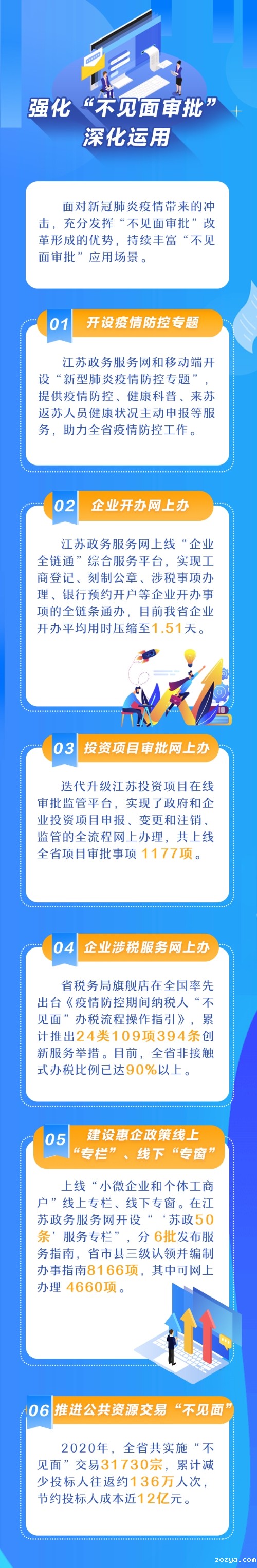 三是投资项目审批网上办。迭代升级江苏投资项目在线审批监管平台,实现了政府和企业投资项目申报、变更和注销、监管的全流程网上办理,共上线全省项目审批事项1177项。