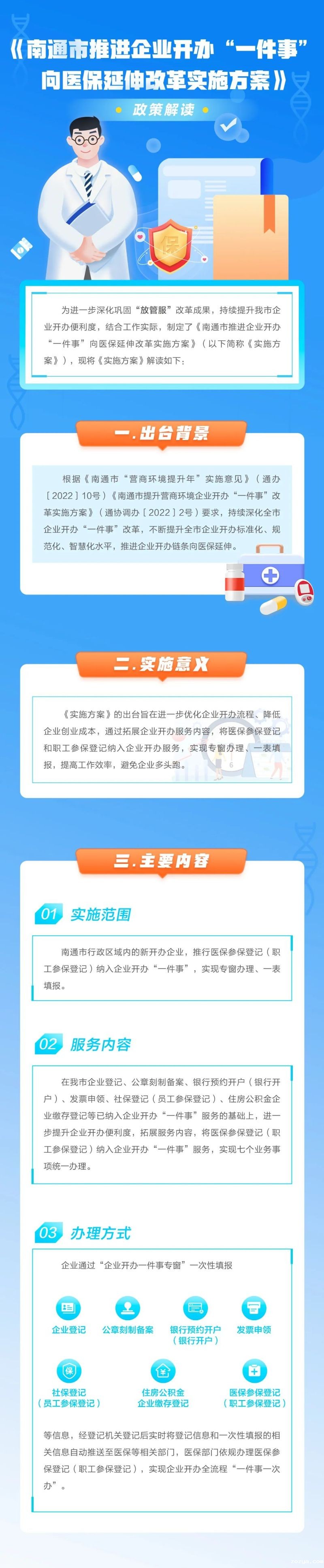 一图读懂《南通市推进企业开办“一件事”向医保延伸改革实施方案》
