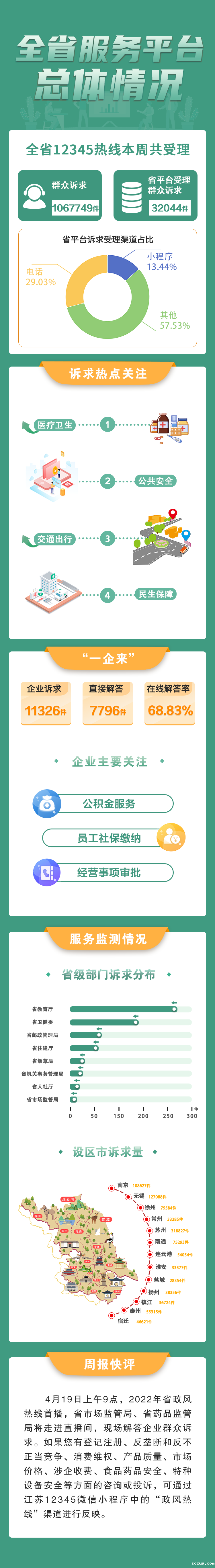 一图读懂江苏12345热线运行情况(4月4日-4月10日)