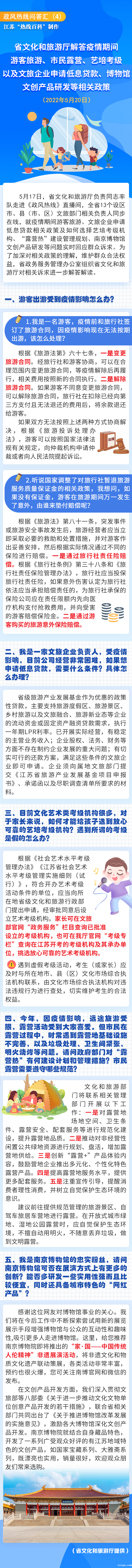 政风热线问答汇(4) 省文化和旅游厅解答疫情期间游客旅游、市民露营、艺培考级以及文旅企业申请低息贷款、博物馆文创产品研发等相关政策