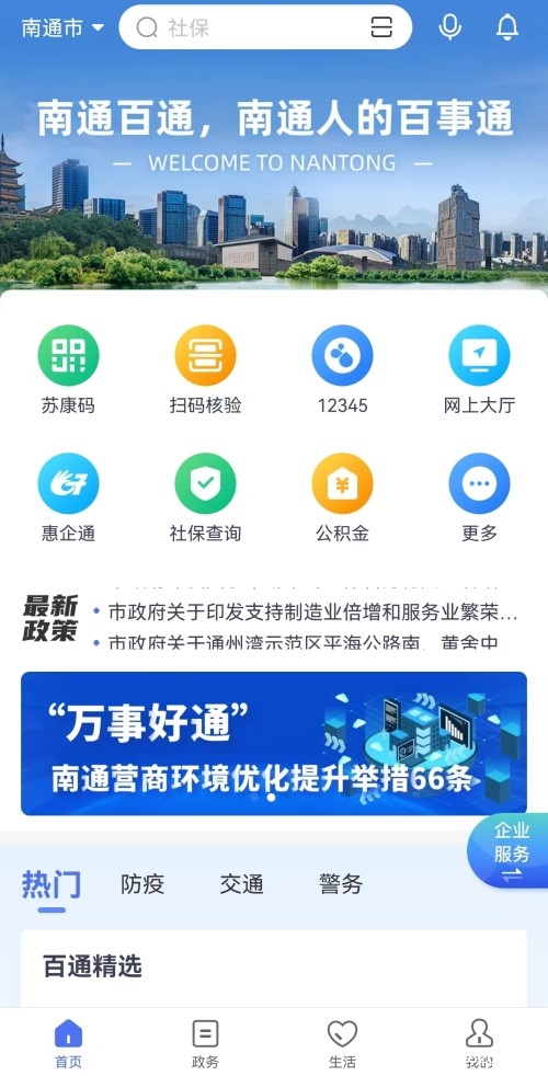 作为“城市超级APP”,“南通百通”可提供1471项政务事项、639项便民事项在线办理、查询服务。疫情防控相关的苏康码、场所码扫码核验,智慧停车,惠企通政策直达平台,公积金服务,社保服务等都是高频应用。目前,“南通百通”的注册用户达422万人,其中实名认证用户达329万人。