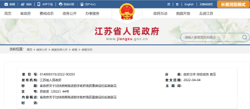 去年以来,省级层面出台一系列大动作,江苏数字政府建设呈现“加速度”:2021年8月,《江苏省“十四五”数字政府建设规划》出台,明确了发展思路、创新路径;今年2月,《江苏省公共数据管理办法》开始施行;4月,省政府出台《关于加快统筹推进数字政府高质量建设的实施意见》;5月,《江苏省数字政府建设2022年工作要点》在省政府网站公开。省政务办将从建设“苏服办”总门户、自主安全的“政务云”、快捷通达的电子政务外网,以及提升省一体化政务服务平台能力等方面,筑牢数字政府运行的“四梁八柱”。与此同时,江苏将着力打通数据共享“大动脉”,推进“一网通办”“一网统管”,以数字化治理驱动一流营商环境建设,给企业群众更强的获得感。