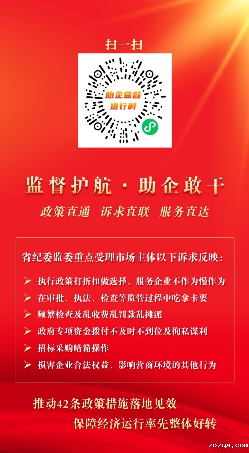 为监督推动中央稳经济一揽子政策和接续措施、我省出台的42条政策措施落地见效,保障全省经济运行率先整体好转,江苏省纪委监委持续深化服务保障营商环境系列助企活动,会同省政务服务管理办公室近日开通“监督护航·助企敢干”二维码。