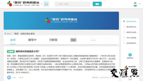 为全方位提供政策咨询服务,省政务办依托全省12345一体化诉求办理机制,建立省市县三级6930家部门单位在内的工作网络,全面支撑“晓苏”政务问答台建设。对政策类咨询,问答台依托“热线百科”政务信息库在线答复,不能直接答复的则流转至相关部门单位在一日内解答;对非政策咨询类问题,派发至相关部门办理。