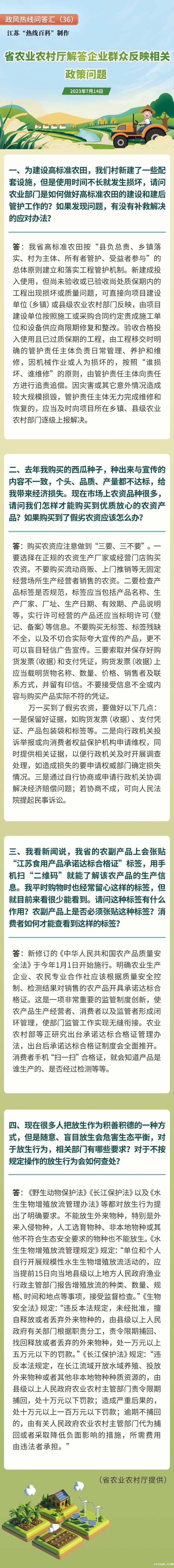 政风热线问答汇(36)省农业农村厅解答企业群众反映相关政策问题