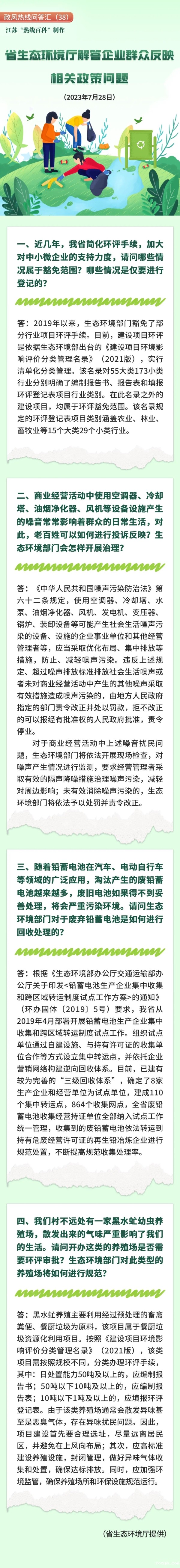 政风热线问答汇(38)省生态环境厅解答企业群众反映相关政策问题
