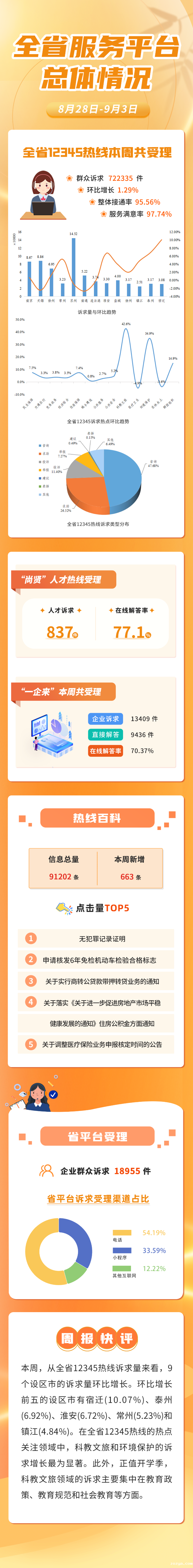一图读懂江苏12345数据周报(8月28日-9月3日)