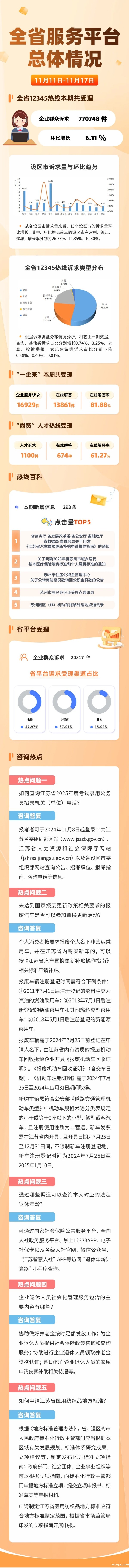 一图读懂江苏12345热线运行情况(11月11日-11月17日)