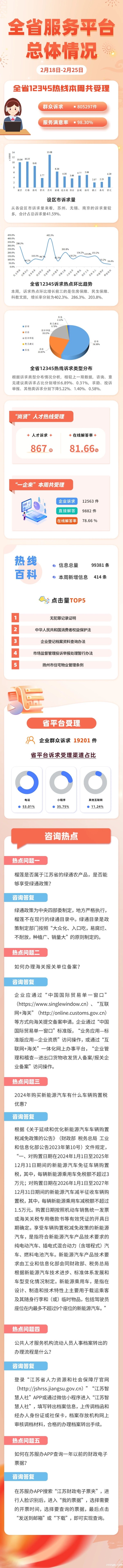 一图读懂江苏12345热线运行情况(2月18日-2月25日)