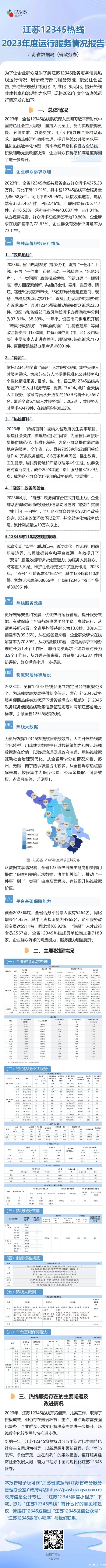 一图读懂江苏12345热线2023年度运行服务情况报告