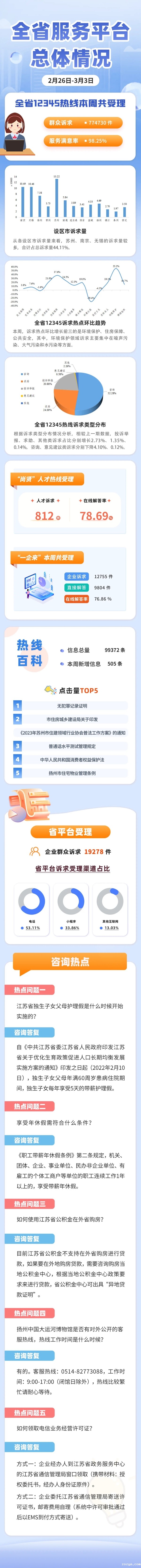一图读懂江苏12345热线运行情况(2月26日-3月3日)