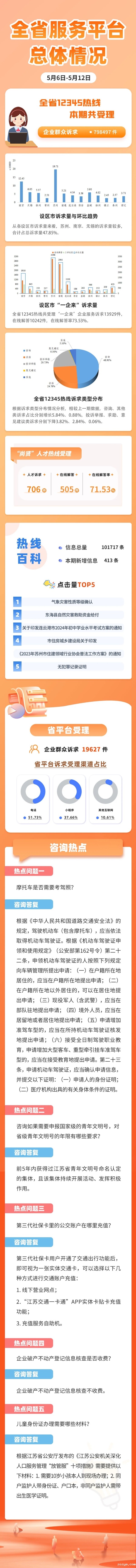 一图读懂江苏12345热线运行情况(5月6日-5月12日)