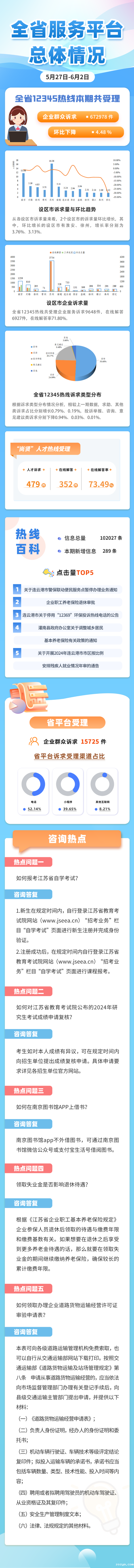 一图读懂江苏12345热线运行情况(5月27日-6月2日)