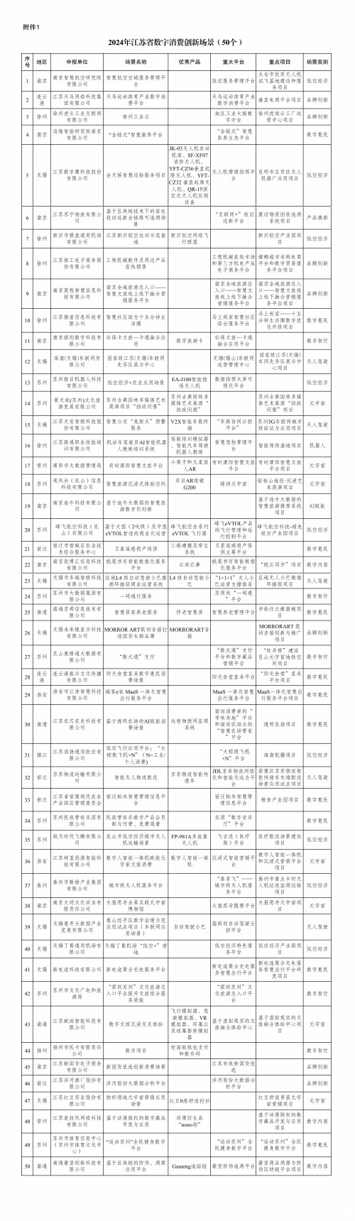 为培育壮大数字消费,打造全新消费场景,推动以新场景、新服务、新体验、新潮流为特点的新型消费加速涌现,带动消费结构升级,省数据局面向各地重点企业(单位)开展了数字消费创新场景征集工作。日前,经地方初审、形式审查、专家评审、合规审查、面向社会公示等程序,确定“智慧低空空域服务管理平台”等50个场景为“2024年江苏省数字消费创新场景”,确定“低空经济”等10个类别中的第1名为“2024年江苏省数字消费典型创新场景”。