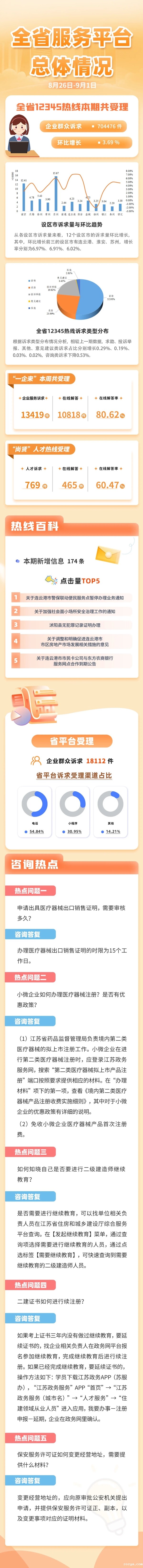 一图读懂江苏12345热线运行情况(8月26日-9月1日)