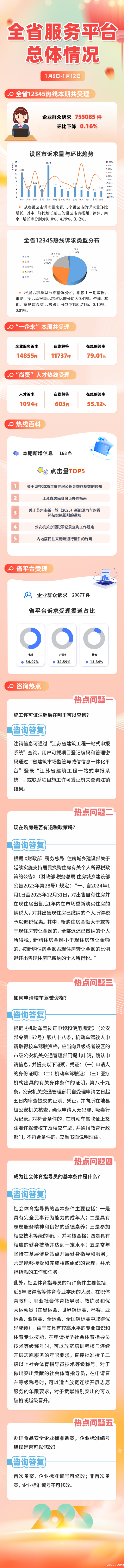 一图读懂江苏12345热线运行情况(1月6日-1月12日)