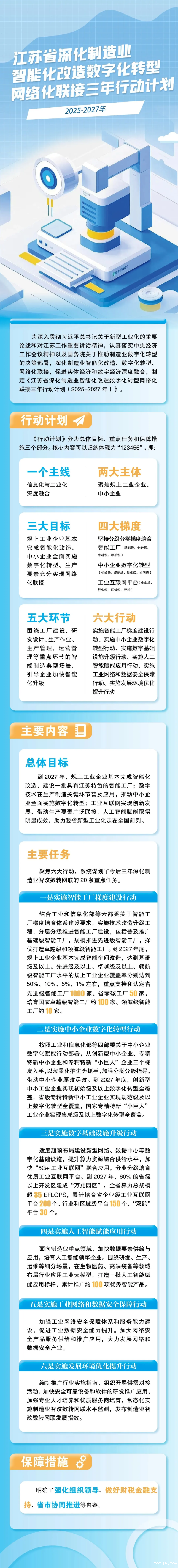 一图读懂《江苏省深化制造业智能化改造数字化转型网络化联接三年行动计划(2025—2027年)》