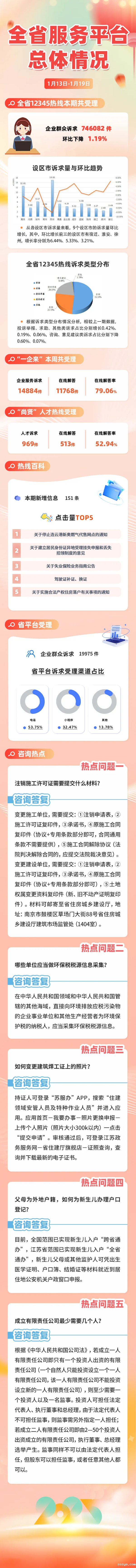 一图读懂江苏12345热线运行情况(1月13日-1月19日)