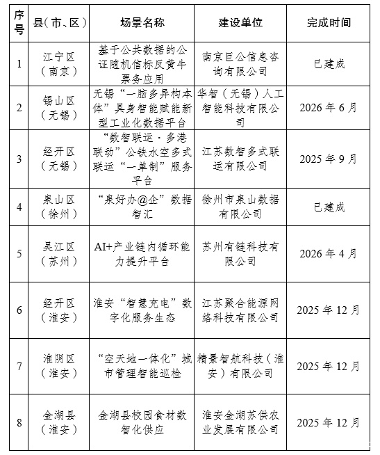 这是江苏今年第三次评选公共数据“跑起来”场景县(市、区)实践案例名单。今年7月,省数据局在全国率先组织开展公共数据“跑起来”场景县(市、区)实践案例征集,首批公布的9个实践案例,覆盖诚信保、城市生命线安全工程等领域。8月公布了第二批实践案例,13个案例涵盖新能源、就业服务等多个重点领域。