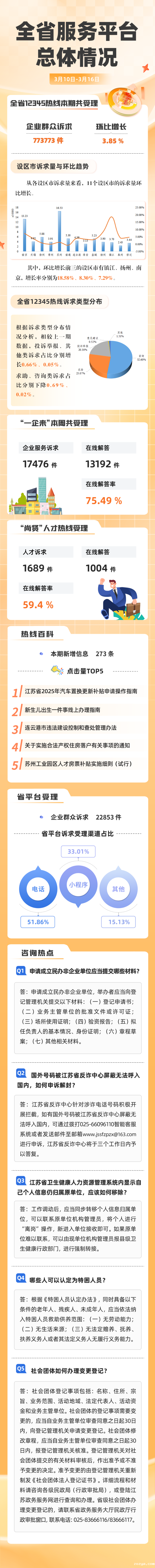 一图读懂江苏12345热线运行情况(3月10日-3月16日)
