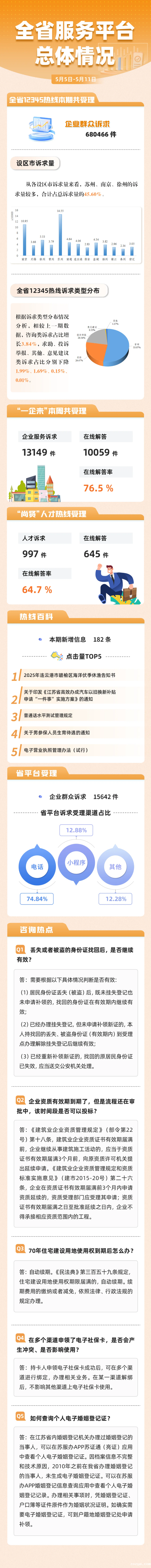一图读懂江苏12345热线运行情况(5月5日-5月11日)