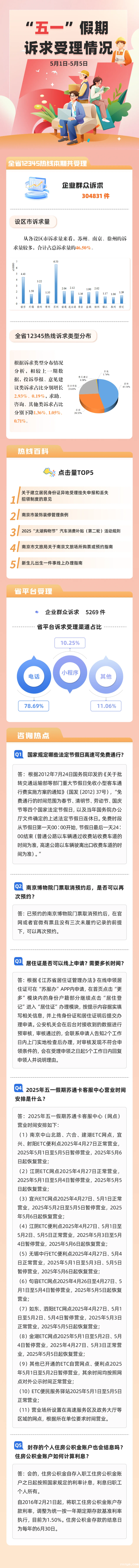 一图读懂“五一”假期诉求受理情况(5月1日-5月5日)
