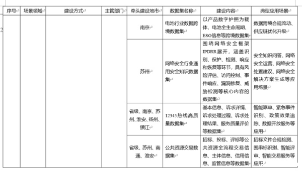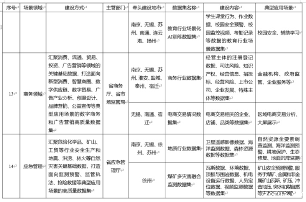 首批建设清单,锚定江苏数据富集领域及创新领域发力。清单共涉及工业制造、交通运输、医疗健康、科学研究、金融服务、文化旅游、城市治理、人力资源、绿色低碳、农业农村、智慧能源、教育教学、商务领域、应急管理、气象服务、公共安全16个重点领域,以及除上述重点领域外,通用大模型、数据跨境、政务服务等其他领域的高质量数据集。